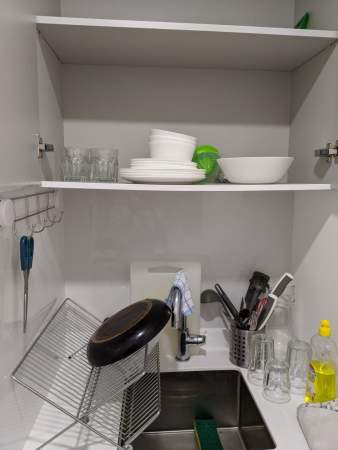 Studio room with bathroom and kitchenette. Can stay up to 2 pax.