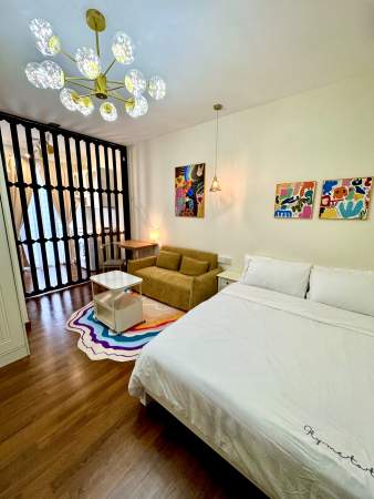 Welcome to The Aurora Studio — a bright, fully furnished designer studio that combines function and flair. Featuring bold art, a plush queen-sized bed, and a dedicated kitchen and ensuite bathroom, this vibrant unit is perfect for working professionals or international students who love comfort with character.