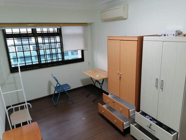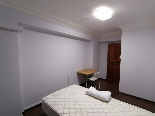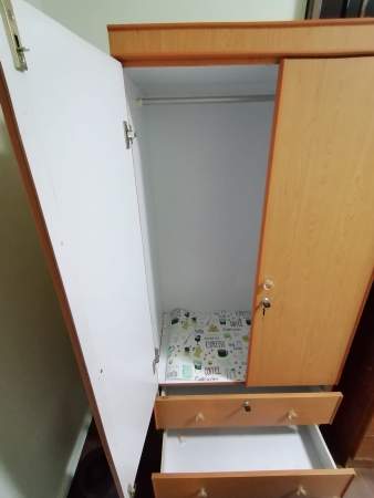 Single bed, wardrobe, table, chair, standing fan provided,