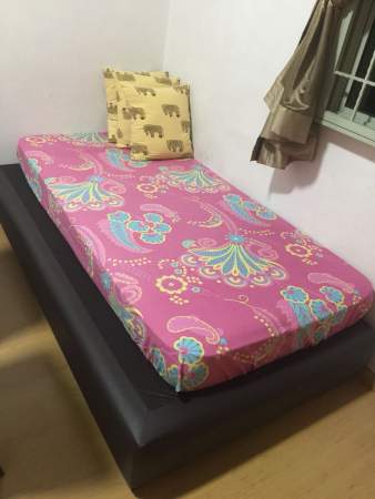 Super single bed, wardrobe, study table, chair and standing fan provided,