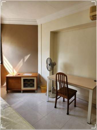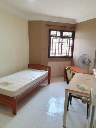 Super single bed, wardrobe, table, chair and standing fan provided,