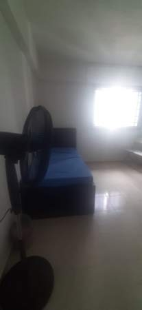 single bed (underneath got extra bed), wardrobe, table, chair and standing fan provided,
