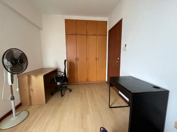 Super single bed, build-in wardrobe, table, chair and standing fan provided,