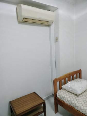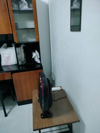 Single bed, wardrobe, table, chair, standing fan provided,