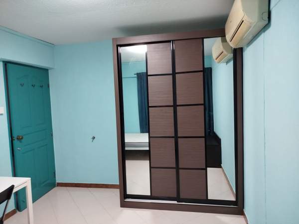 Super single bed, wardrobe, table, chair, shoes cabinet and standing fan provided,