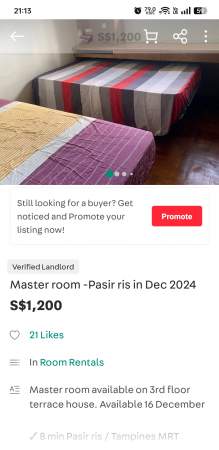 Master room in loyang (pasir ris) Available : December 15 Rental: 1.2K with utilities No agent fee No owner staying