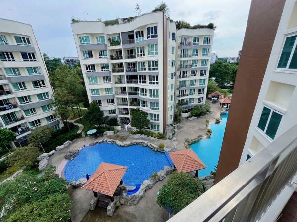 The condo has a gym, swimming pool, sports field, parking space, and convenient transportation with a bus stop right outside.