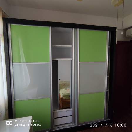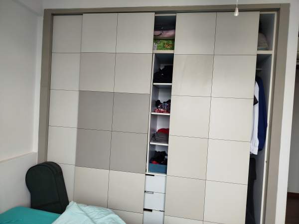 - Queen bed (2.0x1.6m); Big Wardrobe (2.4x2.3x0.65m).