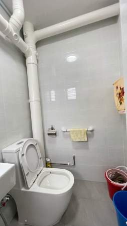 Shared common toilet with lady landlord
