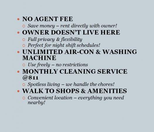 Super Single Bed, Aircon, WIFI, Built-in Wardrobe with lots of storage.