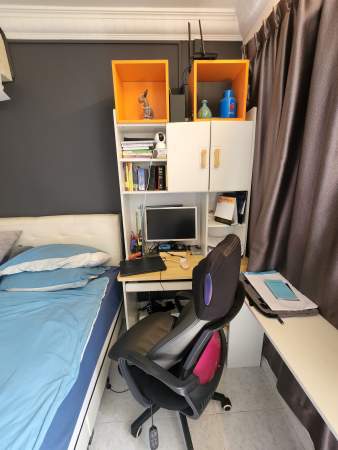 Fully furnished with study table & chair; queen size bed + Kingkoil mattress; 2 wardrobes; TV set, aircon & ceiling fan.