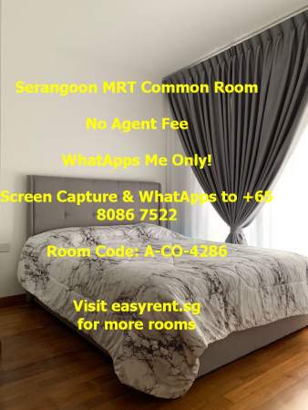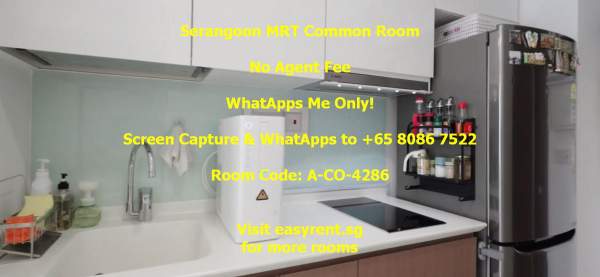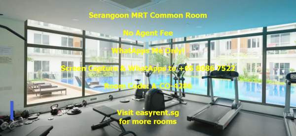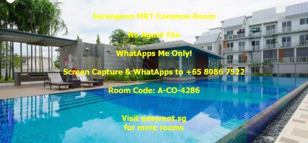 Room Code: A-CO-4286 2 Jln Lokam 537846 Near Serangoon MRT M.@.L.E & F.E.M.@.L.E welcome Nice C.H.I.N.@.S.E owner PUB included - Yes Common Room 1pax - $1800 Common Room 2pax - $2000 Common Room 3pax - $No Common Room 4pax - $No Minimum 6 months occupancy Owner prefer 12 months lease Availability: 1-Jul-25 Air cons - Yes Cooking - Light Cooking Allowed (Instant Noodle, Boiling, Steaming .etc) (Less Oil, Less Odour, Minimal mess and cleaning requires) (Must Clean Up) Owner stay - Yes Environment - Young Family Without Kid Visitor - No Tenant's Pet - No Owner's�Pet - No WiFi - Yes Washing Machine - Yes Household size - 1pax - 3pax Common toilet users - 0 Water heater - Yes Whatapps +xxxx7522 No agent fee