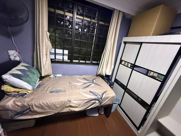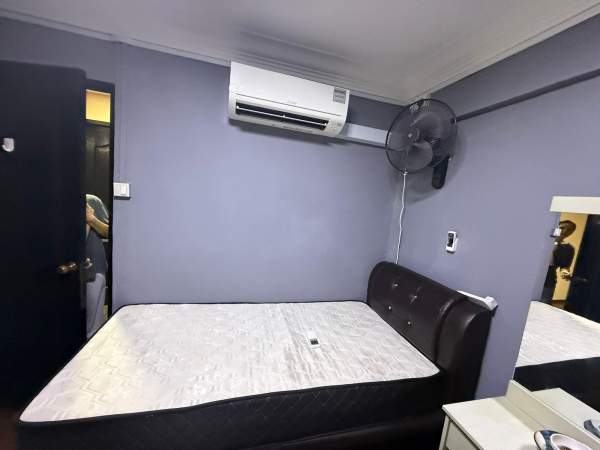 Queen size bed, build in wardrobe, dressing table, chair and standing fan provided,