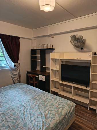 4) Offers a spacious room furnished with computer desks, Ikea wardrobe, and dressing table