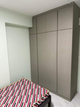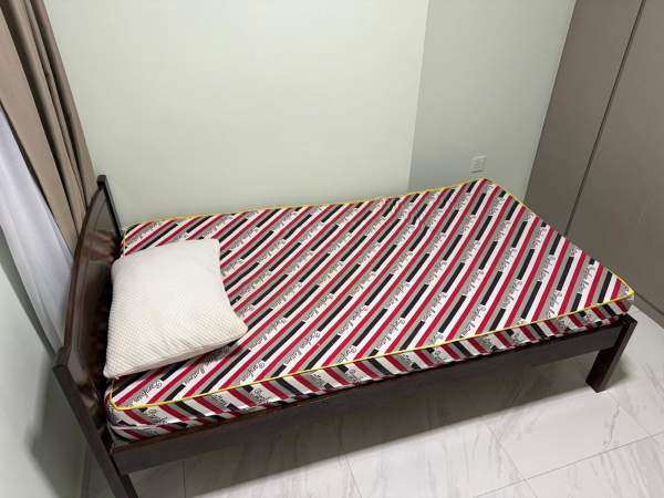 Super single bed, wardrobe, table, chair and standing fan provided,