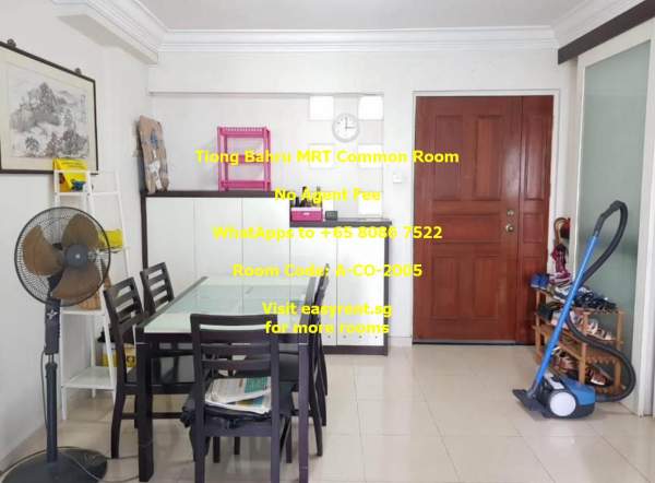 Room Code: A-CO-2005 Kim Tian Road 163119 Near Tiong Bahru MRT MALE & FEMALE welcome Nice Chinese owner PUB/Utilities (Water & electricity) included - Yes Common Room 1pax - $1350 Common Room 2pax - $1350 Common Room 3pax - $No Common Room 4pax - $No Minimum 6 months occupancy Owner prefer 12 months lease Availability: 1st Feb 2026 Air cons - Yes Cooking - Heavy Cooking Allowed (Stir, Fry) (More oil, Strong Odour, More mess and deep cleaning requires) (Must Clean Up) Owner stay - No (We are Master Tenant) Environment - Adults Only Visitor - Yes Tenant's Pet - No Owner's�Pet - No WiFi - Yes Washing Machine - Yes Household size - 1pax - 3pax Common toilet users - 1 Water heater - Yes Whatapps +xxxx7522 No agent fee