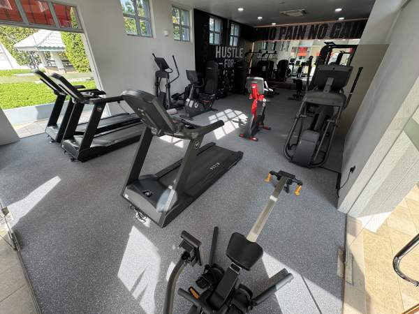 This fully furnished common room is designed for a single resident. With expansive windows overlooking the pool, it offers a serene, private retreat at the end of the day.