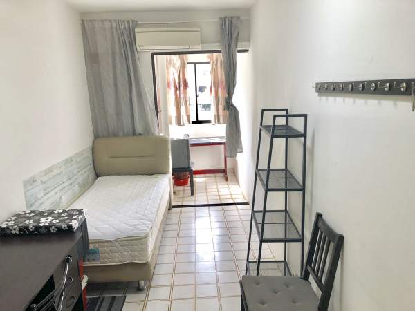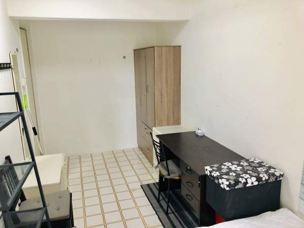 - Cozy single room with bed, desk, wardrobe, and mini-fridge
