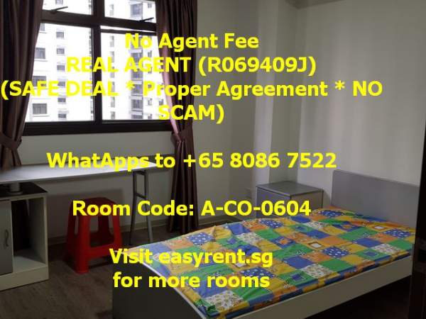 Room Code: A-CO-0604 Jurong West Street xxxx0608 Near Pioneer MRT MALE & FEMALE welcome Nice Chinese owner PUB/Utilities (Water & electricity) included - Yes Common Room 1pax - $950 Common Room 2pax - $No Common Room 3pax - $No Common Room 4pax - $No Minimum 6 months occupancy Owner prefer 12 months lease Availability: Immediate Air cons - Yes Cooking - Light Cooking Allowed (Instant Noodle, Boiling, Steaming .etc) (Less Oil, Less Odour, Minimal mess and cleaning requires) (Must Clean Up) Owner stay - Yes Environment - Adults Only Visitor - No Tenant's Pet - No Owner's�Pet - No WiFi - Yes Washing Machine - Yes Household size - 1pax - 3pax Common toilet users - 3 Water heater - Yes Whatapps +xxxx7522 No agent fee