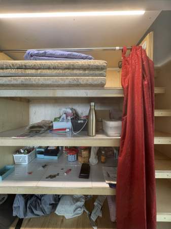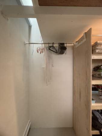 Shelves, cabinet & desk provided.