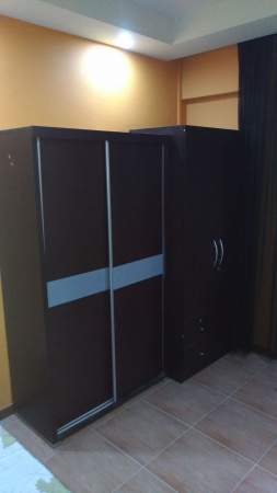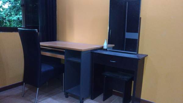 Queen size bed, wardrobe, table, chair, ceiling fan provided.